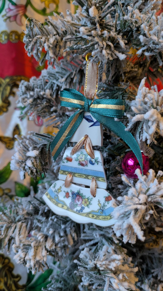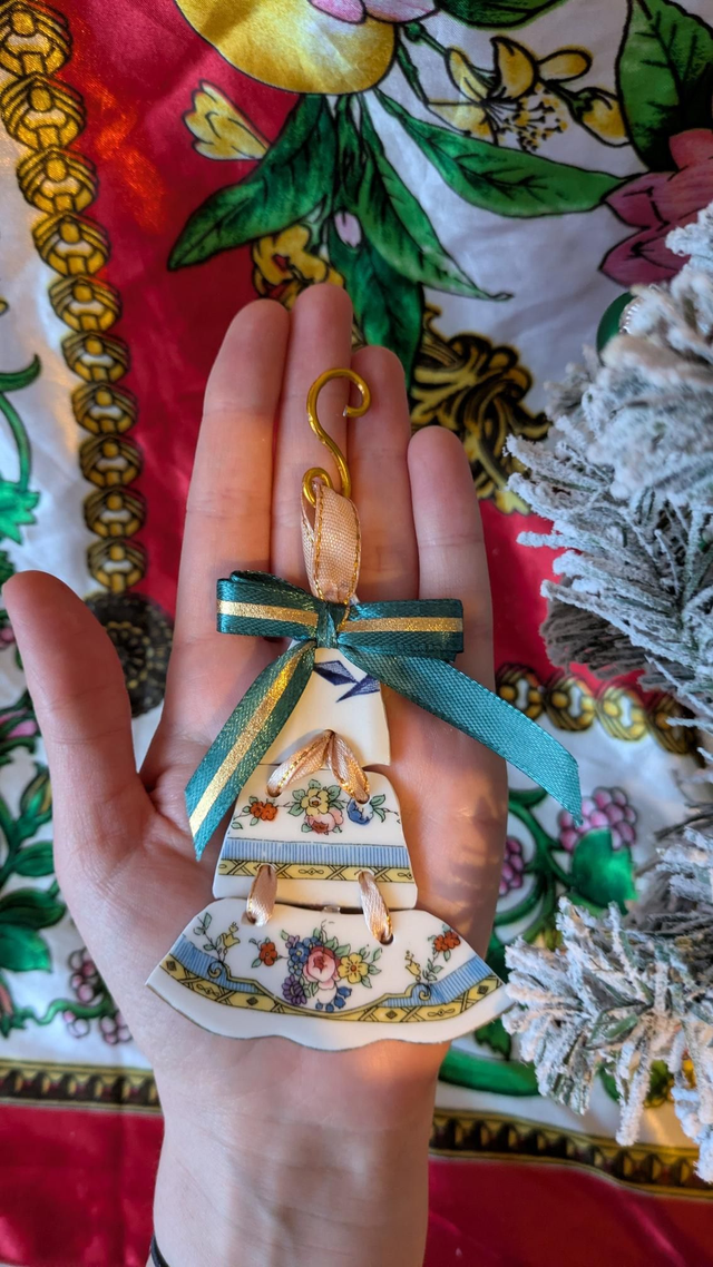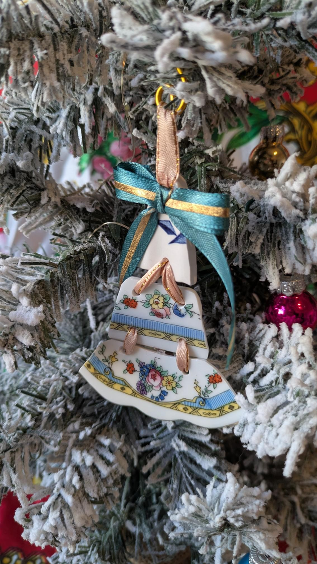 Handmade from vintage plates, this tree ornament is something a bit different to what you'd usually see!